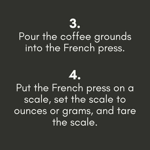 - Put the French press on a scale, set the scale to ounces or grams, and tare the scale.