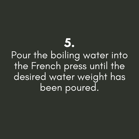 - Pour the boiling water into the French press until the desired water weight has been poured.