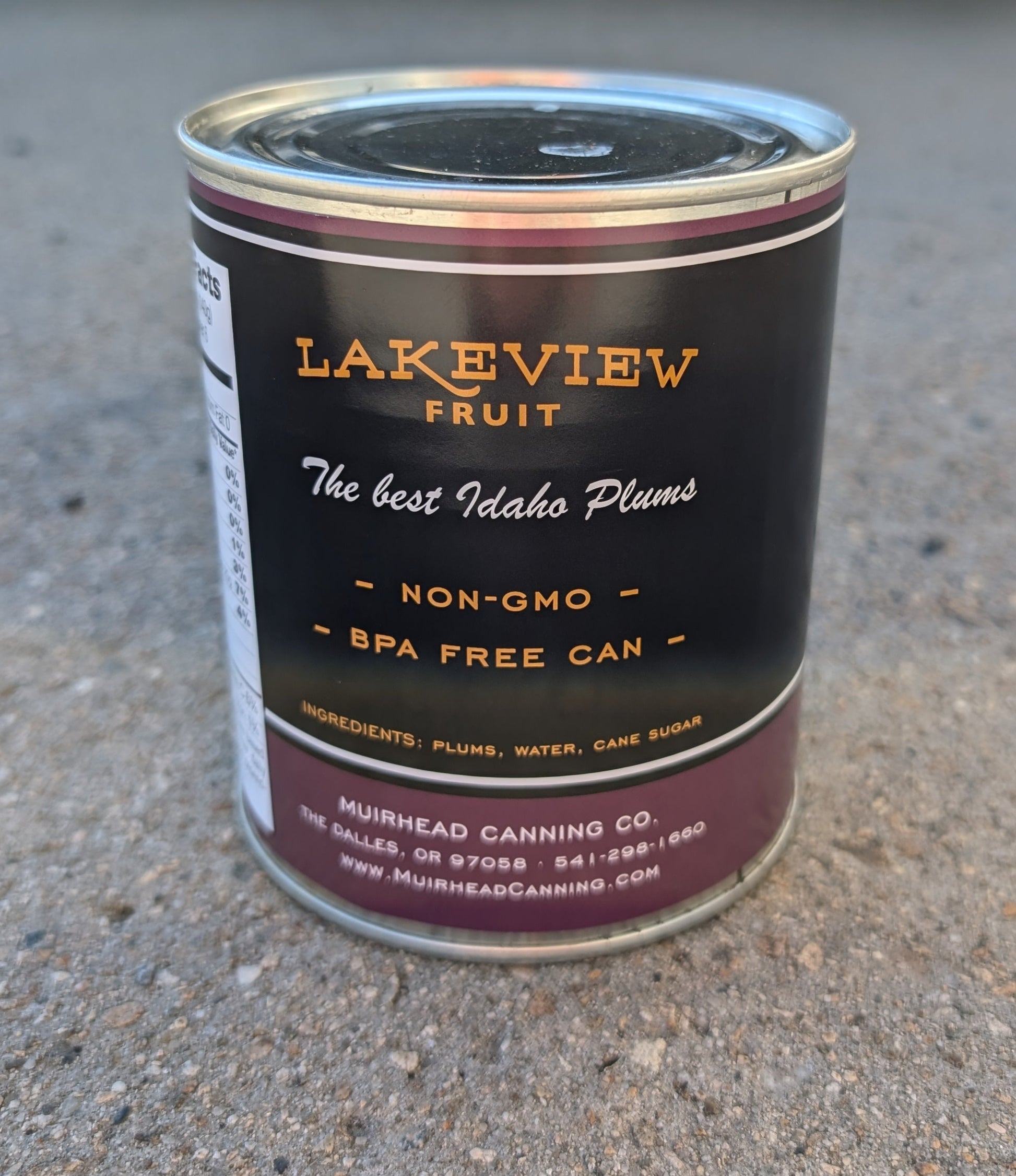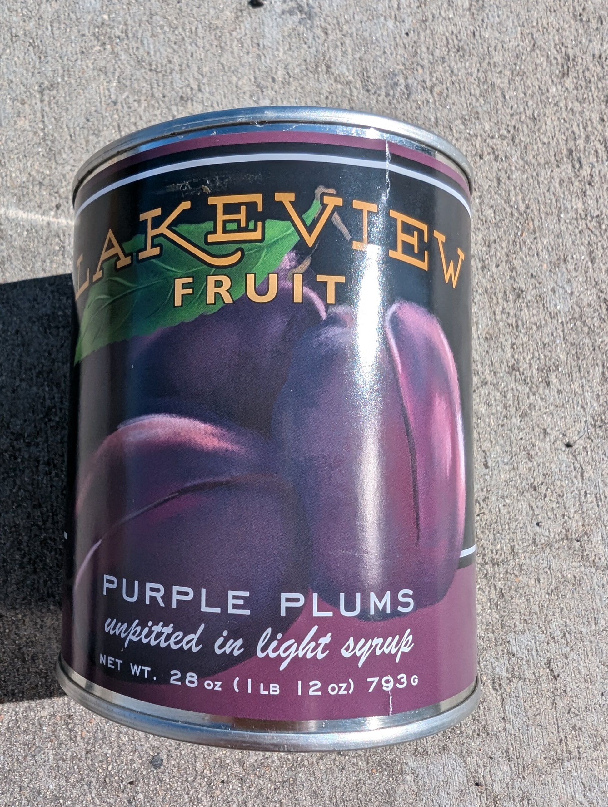 Henggeler Orchards Canned Plums are tinned in a BPA-free can with a light syrup of water and cane sugar. (Also sold as Lakeview Fruit plums.)