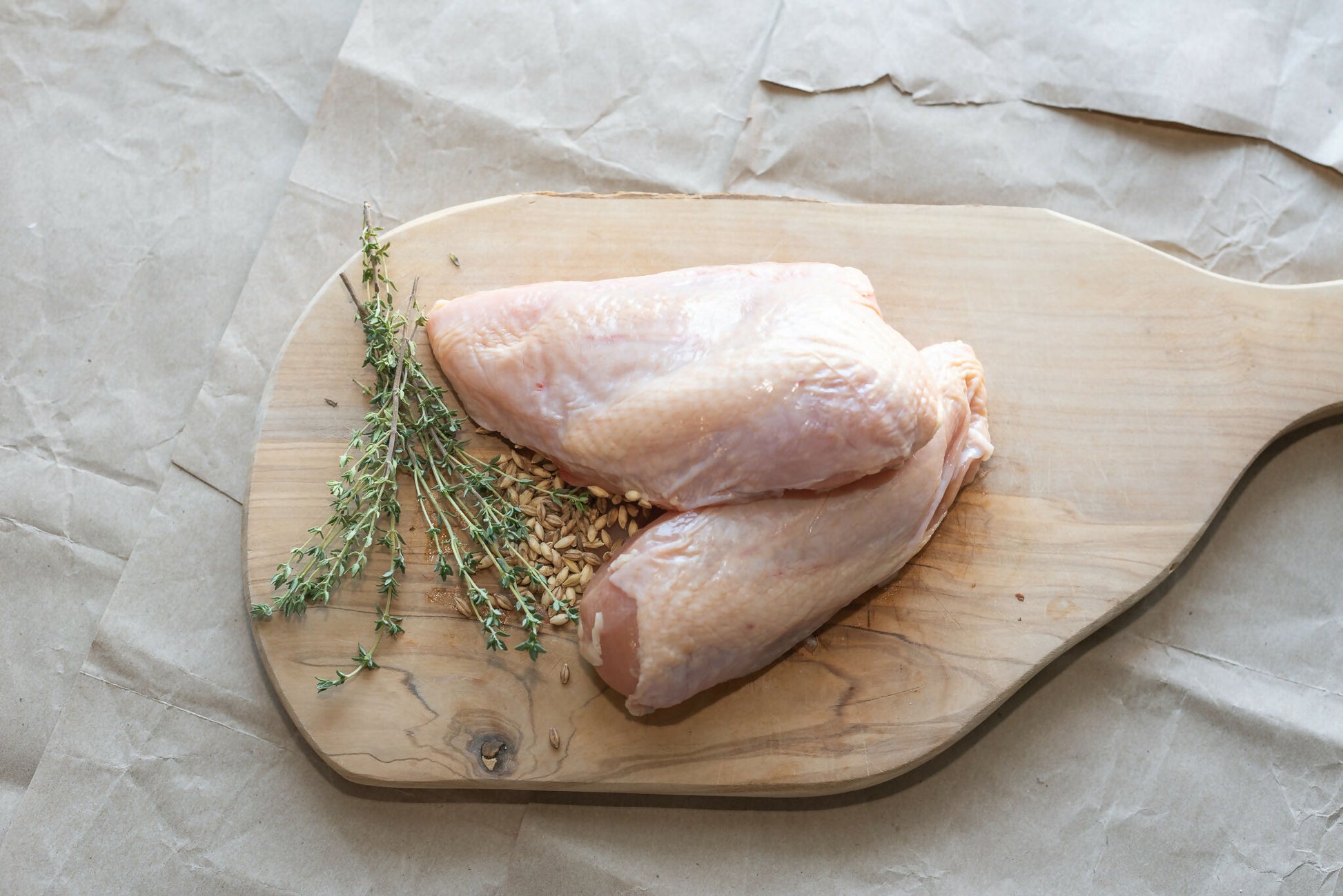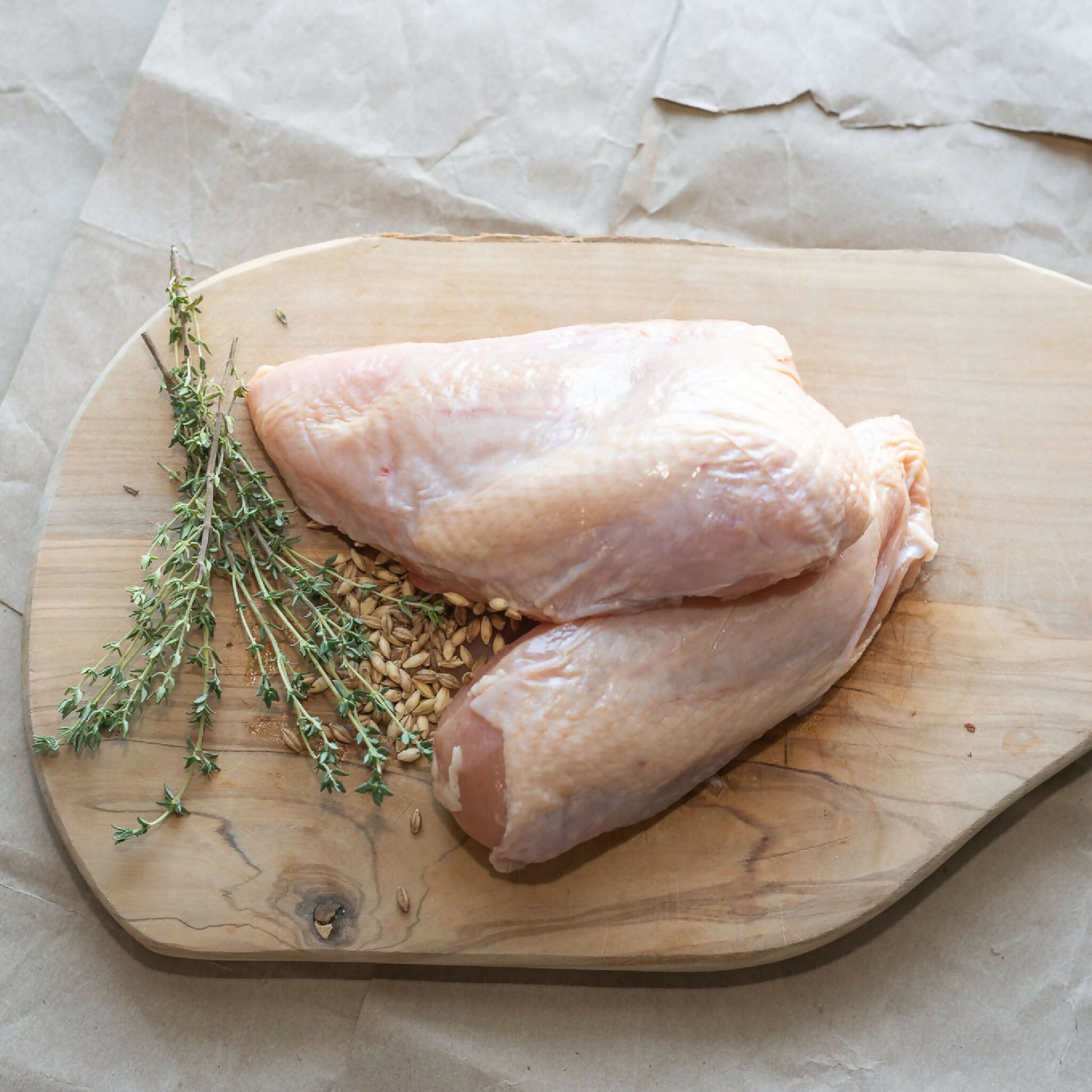 Air-chilled, pastured, free-range chicken breasts. Available in two breast packages. Medium (average 1.3lbs) and large (average 1.8lbs/package)