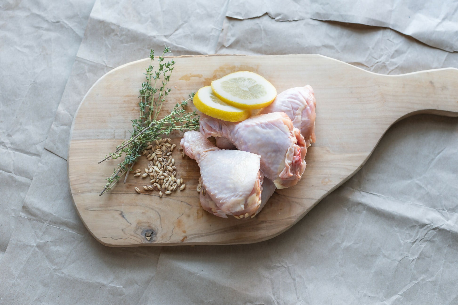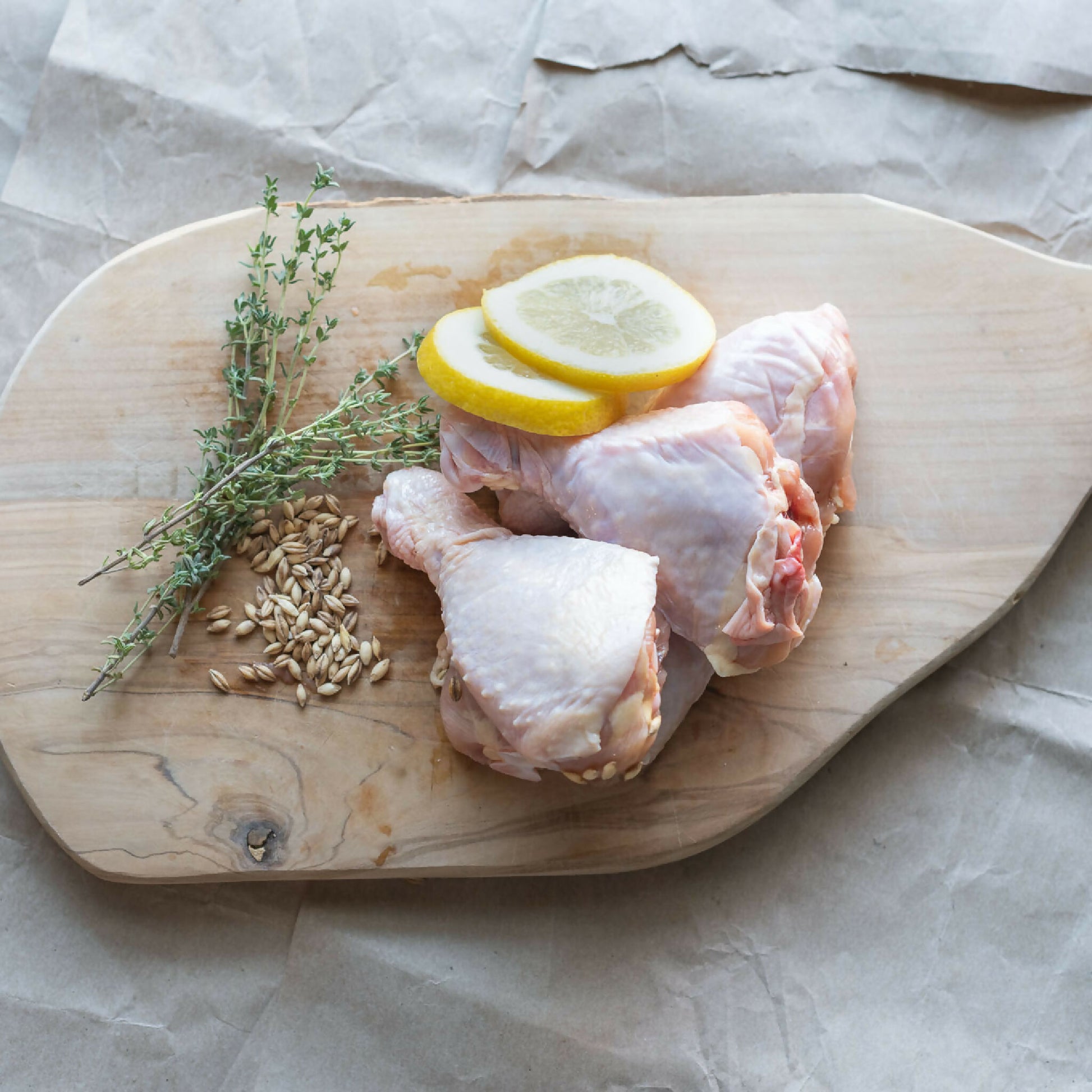 Air-chilled, pastured, free-range chickens legs. Four legs/package. Average weight 1.3lbs/package