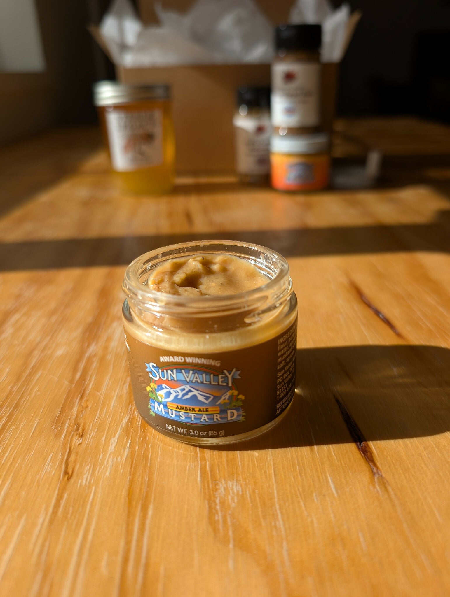 The Farm Pantry Gift Box opens to reveal an assortment of crowd-pleasing seasonings and condiments from Idaho growers and producers: